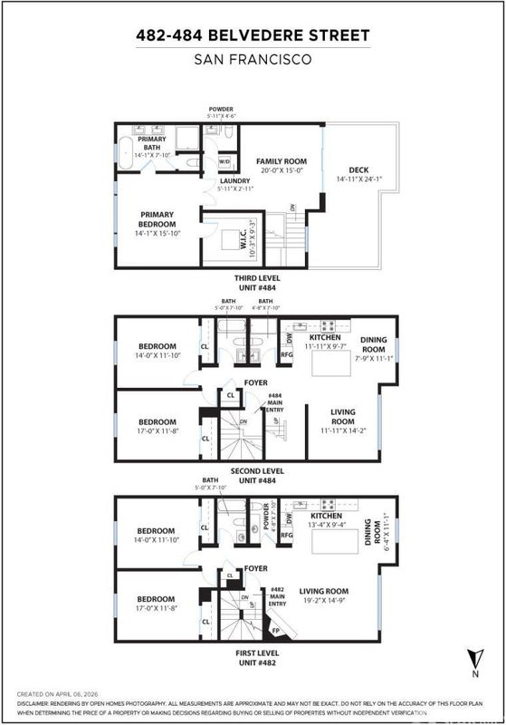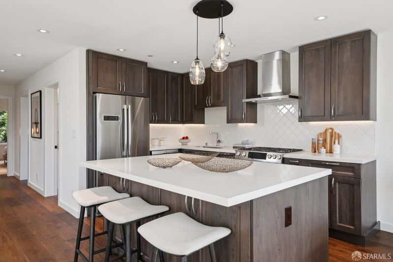 A rare opportunity to own a fully renovated home in Cole Valley that lives like a single-family residence. 482-484 Belvedere offers five bedrooms, four full baths, two half baths, and generous parking across three well-connected levels. The upper level is anchored by a walk-out view deck with sweeping Golden Gate and Marin outlooks, accessed through a 12-foot LaCantina door. The primary suite features a spa-like bath with soaking tub and separate shower, a walk-in closet, and a quiet garden outlook, along with a den and powder room. The main level is designed for daily living and entertaining, with a chef's kitchen, dining area, and living space, plus two bedrooms and two full baths. The lower level adds flexibility with two bedrooms, one and a half baths, a large family room with fireplace, and a supplemental kitchen. A tiered landscaped garden creates outdoor living rarely found in the city. The surrounding areas add further richness to daily life, with Haight/Ashbury, Ashbury Heights, Inner Sunset, and Lower Haight all within comfortable distance. And each fall, Belvedere Street earns a beloved place in the city's calendar, celebrated as one of San Francisco's most spirited Halloween destinations, known for its extraordinary decorations and warm community festiveness. Extensive structural upgrades, foundation reinforcement, fire safety systems compliment the thoughtful craftsmanship of the interior finish work producing this extraordinary residence in San Francisco's most sought-after neighborhood.