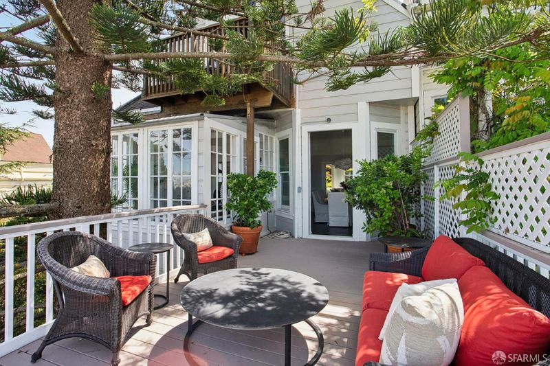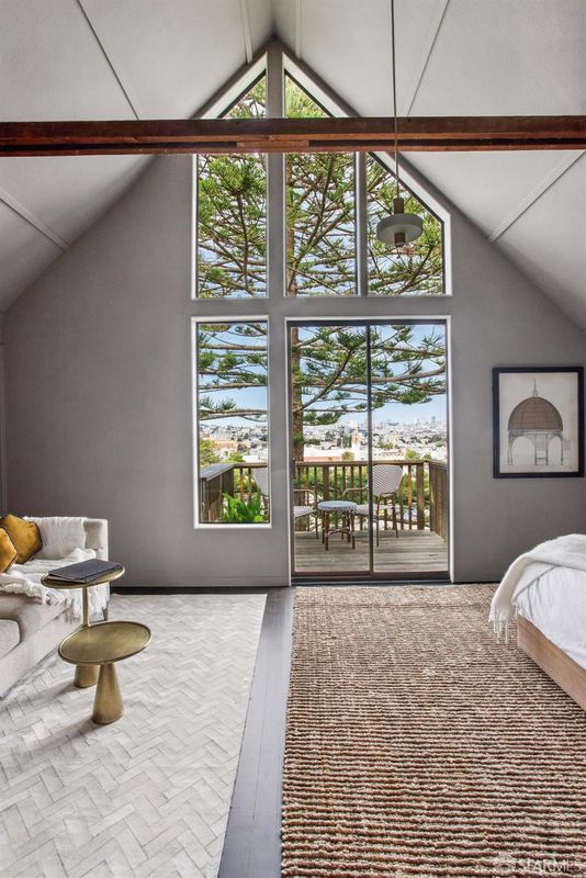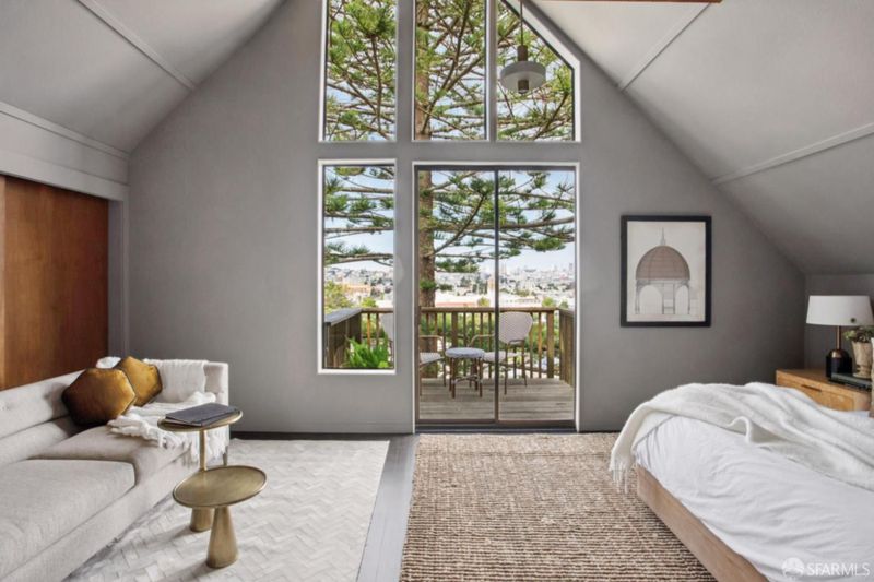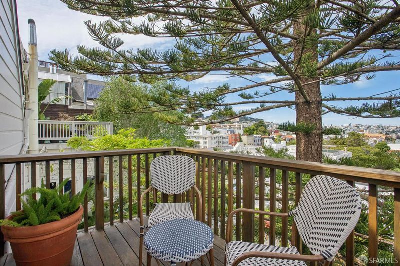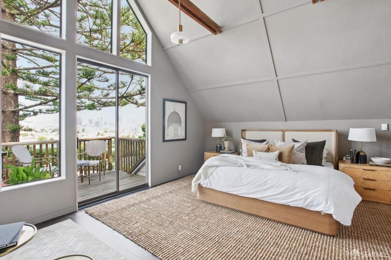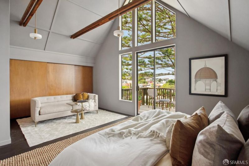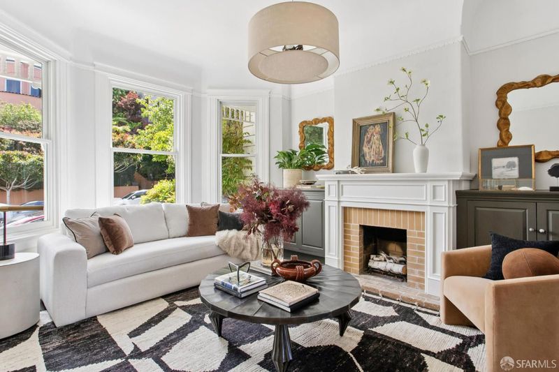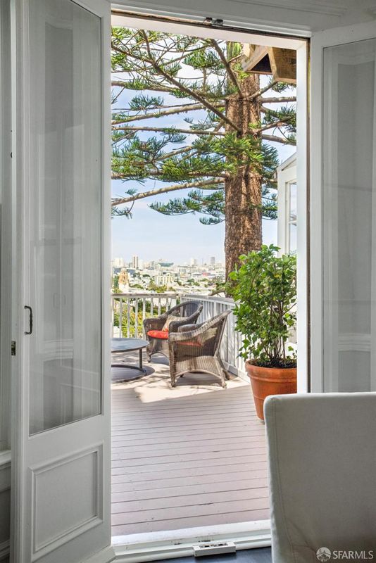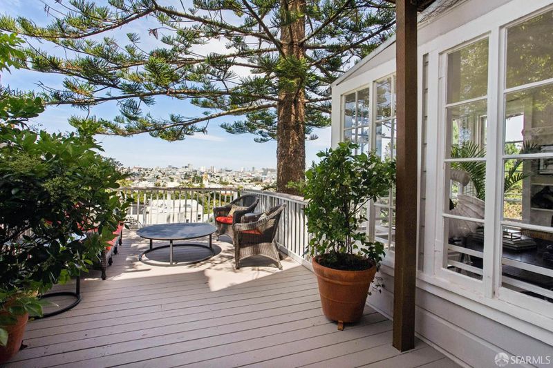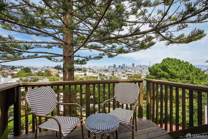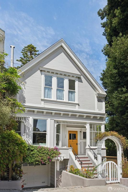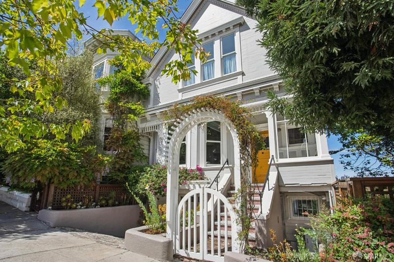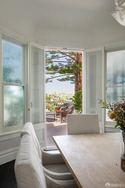 A classic John Anderson Victorian with a twist set on the coveted north side of Liberty Street, overlooking the skyline of San Francisco. This is a home that balances classic proportion with moments of quiet surprise. From the street, the architecture reads as timeless; inside, it opens in unexpected ways. Light moves differently here. One of the two bedrooms rises dramatically, its expansive ceiling and two-story window framing both the city beyond and the striking presence of a Norfolk Island pinean almost cinematic pairing of architecture and nature. The main living spaces carry a sense of ease rather than formality. Softwood floors lend warmth, high ceilings enhance space, and a handsome mantel with gas fireplace anchor the living room with understated comfort. Period built-ins & pocket doors remain intact, offering texture and history without feeling fixed in time. The dining room transitions effortlessly outward, opening to a generous deck where the city reveals itself fullylayered rooftops, shifting light, and that unmistakable San Francisco horizon. The space lends itself to both the formal and informal: morning coffee, late dinners, and quiet observation. The home offers two bedrooms and one and a half baths, thoughtfully arranged. Below, the lower level provides a garage and a flexible bonus room. This traditional home retains its character while allowing for openness, light, and a more contemporary rhythm of living. A house that acknowledges its past, with a warmth and charm to enjoy for years to come.