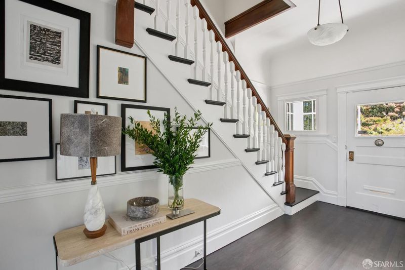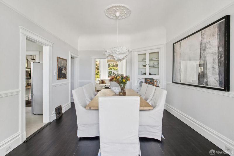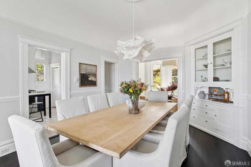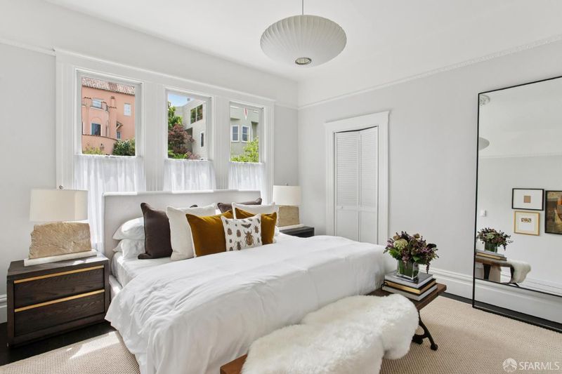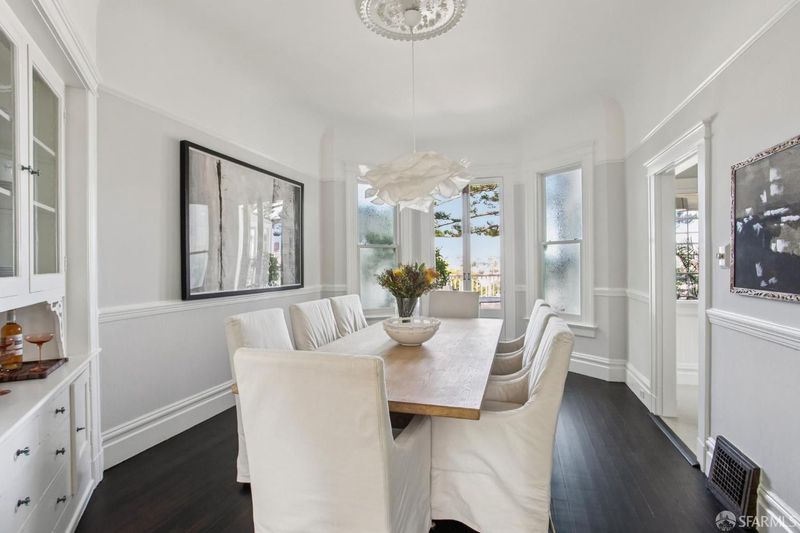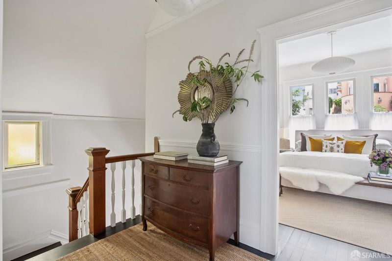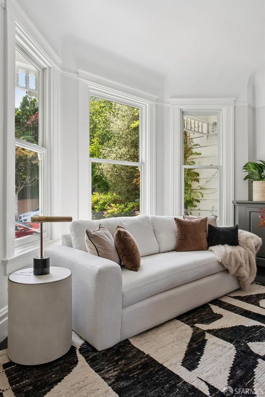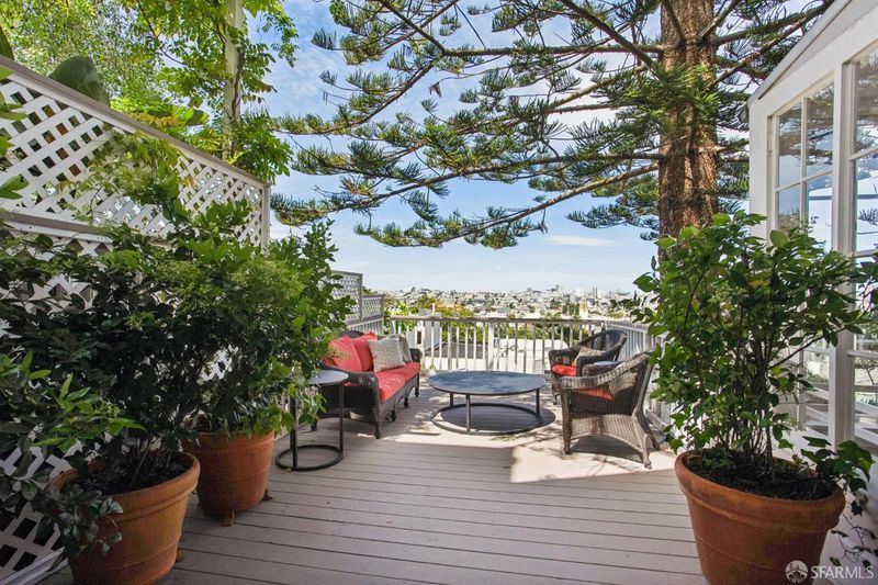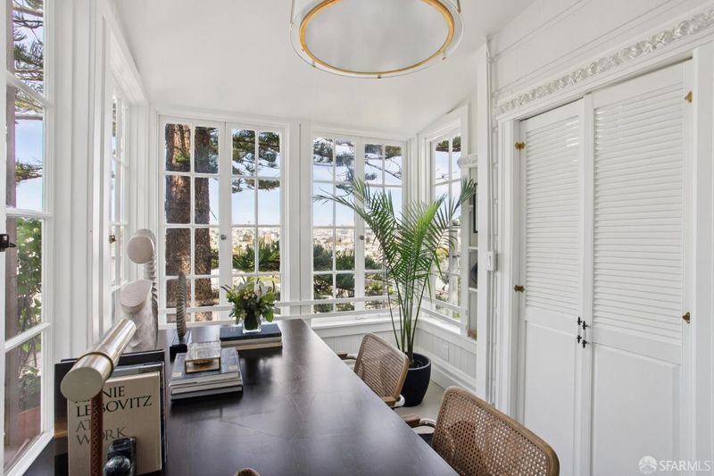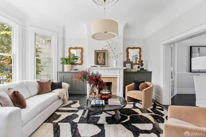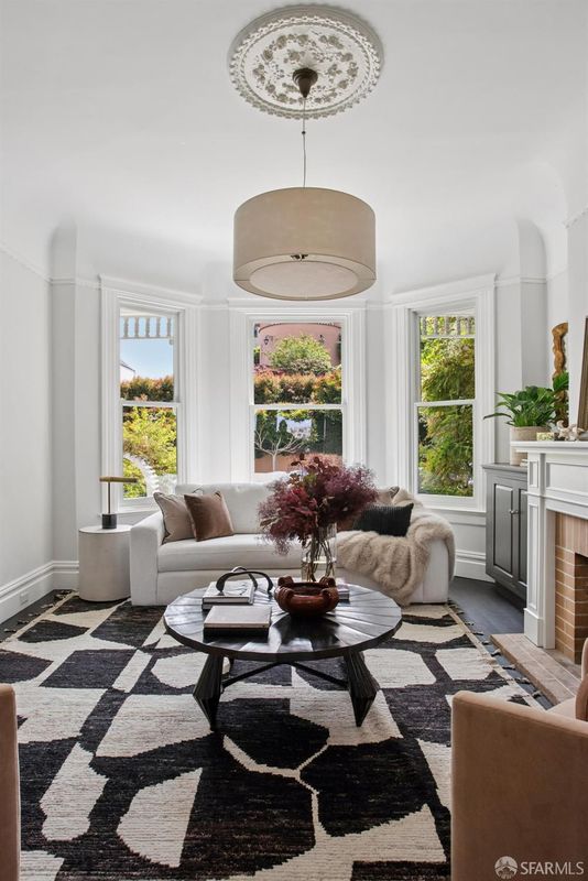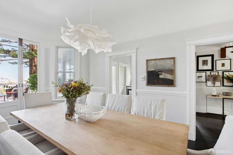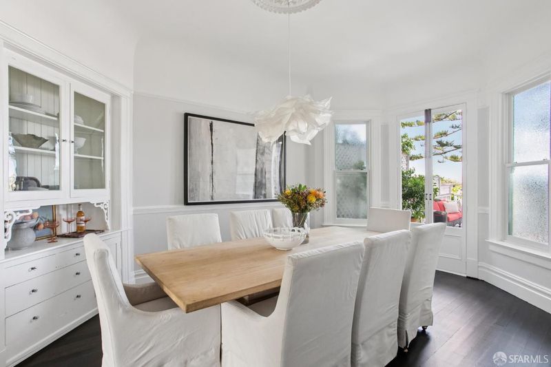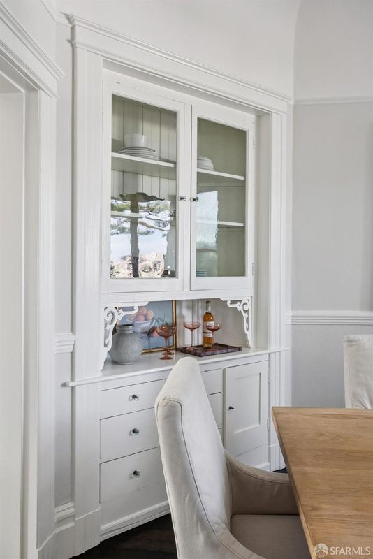 A classic John Anderson Victorian with a twist set on the coveted north side of Liberty Street, overlooking the skyline of San Francisco. This is a home that balances classic proportion with moments of quiet surprise. From the street, the architecture reads as timeless; inside, it opens in unexpected ways. Light moves differently here. One of the two bedrooms rises dramatically, its expansive ceiling and two-story window framing both the city beyond and the striking presence of a Norfolk Island pinean almost cinematic pairing of architecture and nature. The main living spaces carry a sense of ease rather than formality. Softwood floors lend warmth, high ceilings enhance space, and a handsome mantel with gas fireplace anchor the living room with understated comfort. Period built-ins & pocket doors remain intact, offering texture and history without feeling fixed in time. The dining room transitions effortlessly outward, opening to a generous deck where the city reveals itself fullylayered rooftops, shifting light, and that unmistakable San Francisco horizon. The space lends itself to both the formal and informal: morning coffee, late dinners, and quiet observation. The home offers two bedrooms and one and a half baths, thoughtfully arranged. Below, the lower level provides a garage and a flexible bonus room. This traditional home retains its character while allowing for openness, light, and a more contemporary rhythm of living. A house that acknowledges its past, with a warmth and charm to enjoy for years to come.