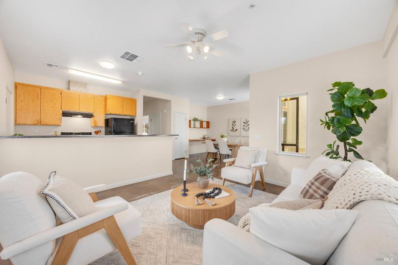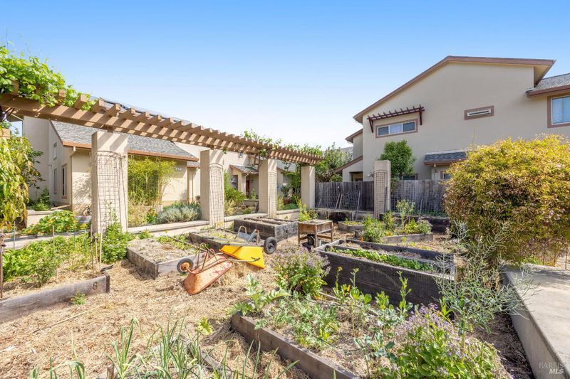 Welcome to this rare end-unit townhome in Sequoia Village Cohousing, where a unique sense of community meets the ease and privacy of home. This modern single-story home features 2 bedrooms and 1 bathroom, offering a bright, open-concept layout filled with abundant natural light. The open kitchen seamlessly flows into the dining and living areas and features countertop seating, ideal for both casual entertaining and quiet nights in. Additional highlights include a hallway laundry closet with a stacked washer and dryer, an included refrigerator, a landscaped front yard, and front and side patios. Built to high energy-efficiency standards, the home also features a solar system. At the heart of the community is a shared garden and vibrant common house, complete with a spacious gathering room, kids' playroom, commercial-grade kitchen, and an upstairs media/TV lounge, perfect for community events or relaxed everyday living. All this, just minutes from parks, shopping, and schools. Experience the unique charm of Sequoia Village Cohousing, welcome home.
