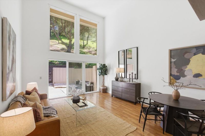 Located in Pacifica's sunny Park Pacifica neighborhood, this bright, beautifully maintained 3 bed, 2 bath town home showcases a generous and thoughtful floor plan in peaceful, serene surroundings. The light-filled living room - featuring vaulted ceiling and double-height windows - opens to a private patio, perfect for both gardening and entertaining friends and family, with a picturesque greenbelt beyond. The kitchen boasts marble countertops with a breakfast bar with several new appliances. The downstairs includes one bedroom and one bath, while the upstairs includes the primary bedroom with an updated en suite bathroom and an additional guest bedroom. The washer and dryer closet is located off the private patio, and a garage for one vehicle completes this serene residence conveniently located near parks, hiking trails, schools, shops, and a short drive to the beach.