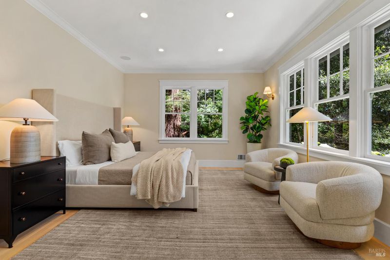 Hampton's inspired design in this spectacular 5 bedroom shingle style Ross residence. Meticulous blend of high end design incorporates bespoke lighting, custom wall coverings, soaring box beam ceilings, divided light windows, and the extensive use of white marble throughout. Beautifully appointed grand scale great room opens directly to the resort like grounds with seamless indoor/outdoor living throughout. Secondary family room on lower level. Perfectly site placed on a verdant +- 1/2 acre property with multiple level outdoor entertaining spaces. In ground pool & spa, outdoor fireplace, large level lawn, and al fresco dining areas. Mature plantings with organized, east coast inspired landscaping throughout. HUGE parking court allows for ample off street parking. Just blocks from the award winning K-8th grade Ross School and Ross Common. Gated, quiet and very private: A rarity for an in town location. Blocks to the vast network of hiking and biking trails in the Phoenix Lane recreational area.