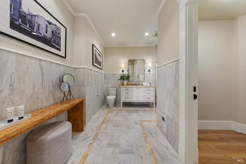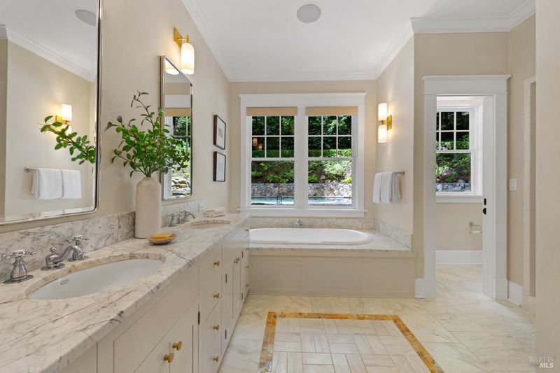 - Double Sinks, Marble, Shower Stall(s), Soaking Tub, Tub