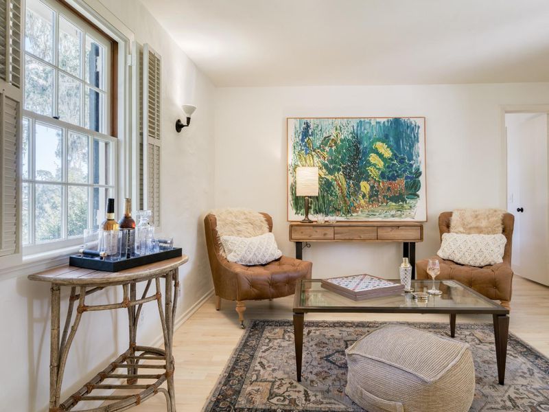 Shirley Temples Wedding Hideaway; A Restored California Adobe Ranch in Aguajito Oaks. Tucked beneath a canopy of majestic oaks, this enchanting California adobe ranch offers a rare blend of timeless charm and Old Hollywood allure. Originally built in 1940 and featured on the cover of *Sunset Magazine* in 1941, the residence reflects an era of thoughtful design and enduring craftsmanship. The property is referenced in Child Star: An Autobiography as the setting for the wedding of Shirley Temple, adding a layer of Old Hollywood history and romance. A gracious living room with original hardwood floors and a wood-burning fireplace anchors the home, while natural light fills each space. Multiple rooms open to inviting porches and a beautifully enclosed garden, creating a seamless indoor-outdoor experience. The homes adobe construction and tile roof help maintain a naturally consistent interior temperature, complemented by a new heating system and often eliminating the need for air conditioning. Configured as two bedrooms with flexibility for a third, the home also includes a formal dining room and a separate family room. Ideally located near Del Monte Golf Course, this peaceful, sun-filled setting offers both privacy and proximity to Montereys coastal lifestyle.