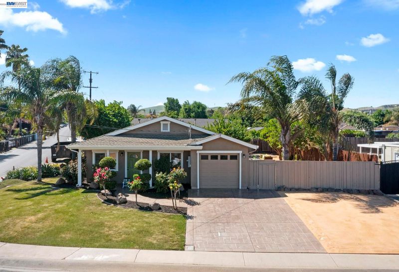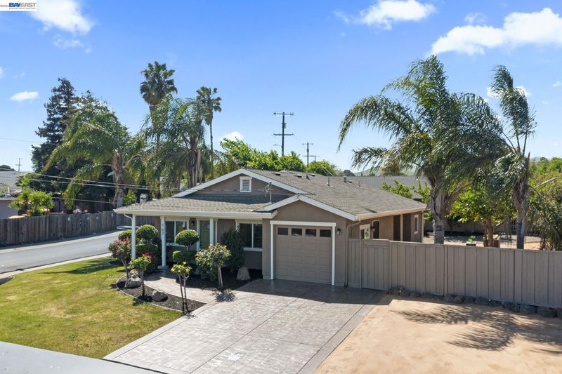 Beautifully Updated Home on a Large Corner Lot offering exceptional curb appeal and abundant parking, including the ability to drive into the backyard, perfect for RV, boat, trailer, or multiple vehicle storage. The expansive stamped concrete driveway and oversized lot provide rare flexibility and convenience, making this property truly stand out. This inviting home features 3 bedrooms, 2 full bathrooms, plus a legal permitted and conditioned bonus room with heating and air conditioning and private exterior access — ideal for a home office, guest suite, gym, or studio. Inside, there is plenty of space for working from home, hobbies, homeschooling, or any lifestyle needs, providing the perfect blend of function and comfort. The updated kitchen is a showpiece, featuring crisp white cabinets, elegant quartz counters, and a full tile backsplash, while the bathrooms have been thoughtfully updated. The spacious primary suite boasts high vaulted ceilings, creating an open, airy retreat. Dual pane windows throughout and newer central heating and air conditioning provide year-round efficiency and comfort. Enjoy relaxing on the welcoming front porch or entertaining under the rear covered patio, all while appreciating the extra space and versatility that only a large corner lot can offer.