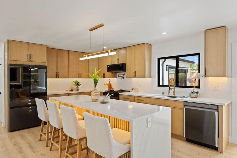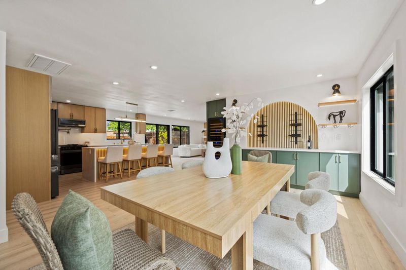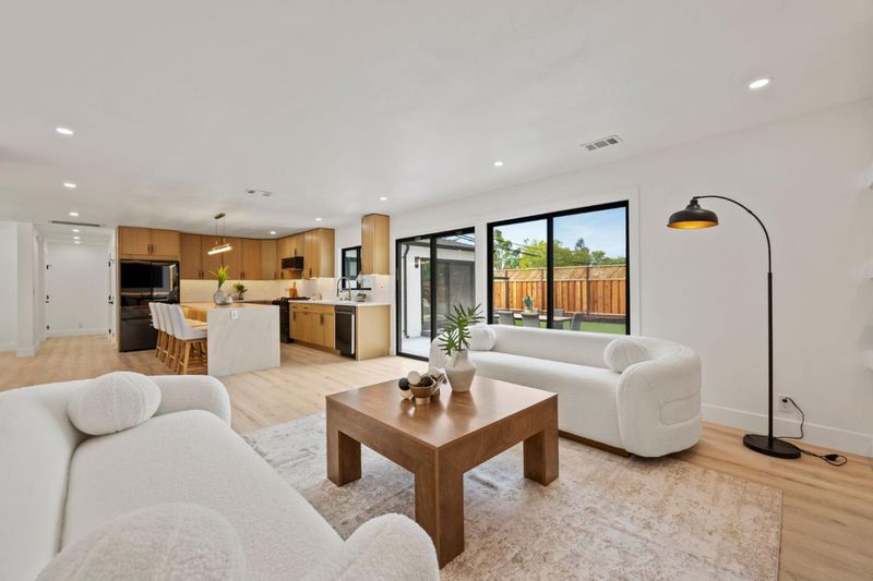 Set on a desirable corner lot, this inviting 4-bedroom, 2-bath Cupertino home has been thoughtfully updated with both function and comfort in mind. Clean, low-maintenance landscaping gives the home a well-kept feel from the start. Inside, recessed lighting and an open layout create a bright, natural flow throughout the space. The kitchen centers around an island with modern pendant lighting, complemented by stainless steel appliances and soft-close cabinetry. A cozy electric fireplace and a spacious bar area add a nice touch of character without feeling overdone. Smart features like a Nest Doorbell and Nest Thermostat bring everyday convenience. The bathrooms are finished with a clean, modern look, complete with LED mirrors and subtle designer touches. The backyard is set up for both relaxing and entertaining, featuring a gazebo, swing set, fire pit area, and outdoor lighting designed to be enjoyed without the extra upkeep. All of this in a well-located Cupertino neighborhood, close to top-rated schools, parks, shopping, and nearby tech campuses.