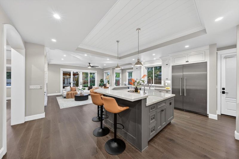 Welcome to 999 Franquette, an estate-like property on a picturesque tree-lined street in the heart of Willow Glen. Set on an expansive 14,375 sq ft lot, this exceptional property features a stunning main residence built in 2017 and a beautifully designed detached ADU built in 2015. The main home offers 4 beds + office, 3.5 baths, and approx. 3,395 sq ft of thoughtfully designed living space. A formal dining room w/ coffered ceilings complements the expansive great room, where the chef's kitchen, living area, and breakfast nook seamlessly connect and open to the backyard - ideal for indoor-outdoor entertaining. The main level includes a bedroom with en-suite bath and a dedicated office w/ built-ins. Upstairs, the spacious primary suite features built-ins, a wine fridge, luxurious bath, and dual walk-in closets. Two additional beds and a laundry room w/ sink and counter space complete the upper level. The backyard is an entertainers dream w/ a covered pavilion, kitchen/BBQ area, wood-fired pizza oven, firepit, and ample space to enjoy. The detached ADU (approx. 1,107 sq ft) includes its own kitchen, living area, two en-suite beds, and private yard. A 3-car garage (approx. 840 sq ft) offers abundant storage. It's time to make Willow Glen your HOME!