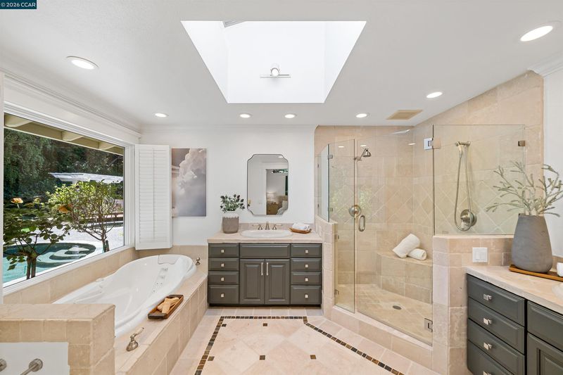 Nestled near the prestigious Round Hill Country Club, this stunning Traditional 4 bedroom plus office, 4 bathroom, 3,734 square foot home blends timeless elegance with everyday comfort. Thoughtfully designed with an expansive, functional floor plan, it offers beautiful yard views from nearly every room—ideal for entertaining and daily living. A charming garden entry welcomes you into light-filled interiors with soaring ceilings, custom lighting, and expansive windows. The dramatic living room features a striking fireplace, while the adjacent dining room offers vaulted ceilings and seamless access to the kitchen. The remodeled kitchen impresses with a large island, bar peninsula, office nook, and ample cabinetry. A sunny breakfast nook with brick fireplace, built-in bar, and French doors opens to the backyard and adjoining family room. The spacious primary suite is a private retreat with yard access, vaulted ceilings, and a walk-in closet. The luxurious bath includes dual vanities, an oversized shower, soaking tub, and skylight. The beautifully landscaped yard offers a deck with BBQ island, pool, spa, fire pit, and serene privacy. Ideally located near Roundhill Country Club, Downtown Alamo, Top Alamo schools, hiking/biking trails, parks and easy commuter access.