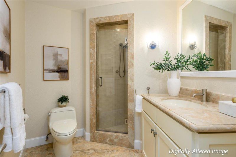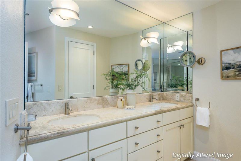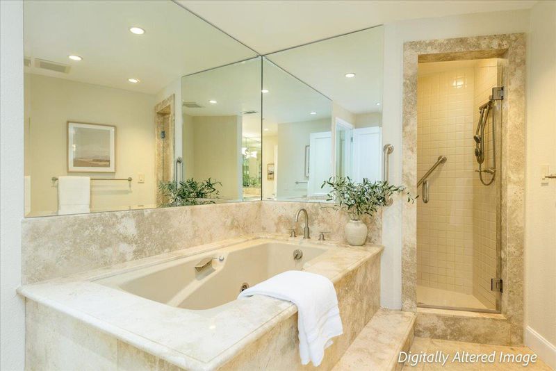 - Double Sinks, Marble, Primary - Oversized Tub, Primary - Stall Shower(s), Primary - Tub with Jets, Shower over Tub - 1, Updated Bath