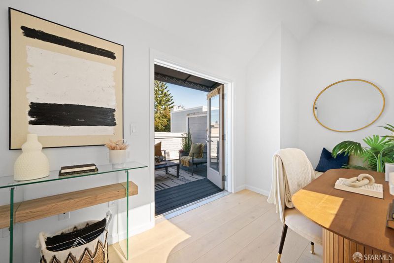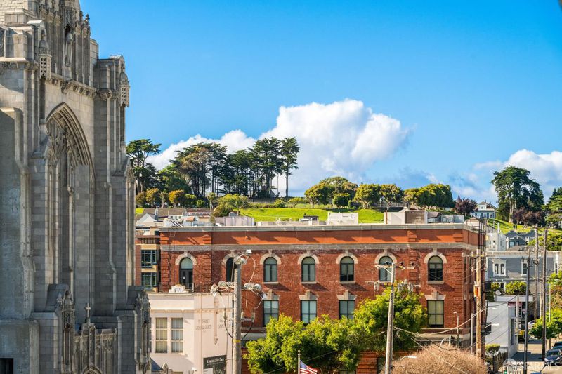 A sophisticated top-floor residence that lives like a single-family home, this beautifully designed 2-bedroom + lofted den, 2.5-bath home offers an exceptional balance of scale, light, and livability in the heart of Lower Pacific Heights. Soaring ceilings, expansive windows, and a dramatic skylight bathe the open-concept interiors in natural light, while a thoughtfully updated kitchen with stainless steel appliances and a generous island flows seamlessly into expansive living and dining areas framed by warm western light and Sutro Tower sunset views. The lofted den offers ideal flexibility as a home office, lounge, or creative retreat, and opens directly to a private rooftop terrace with sweeping eastern skyline views a rare outdoor escape perfectly suited for al fresco dining, morning gardening, or evenings spent entertaining above the city. A privately set bedroom level features two spacious, well-proportioned bedrooms, including a serene and generously scaled primary suite designed for comfort and retreat. Additional highlights include wide-plank flooring, in-unit laundry, smart home features, elevator access, abundant storage, and secure garage parking with shared EV charging, all just moments from the best shops and restaurants along Fillmore Street.